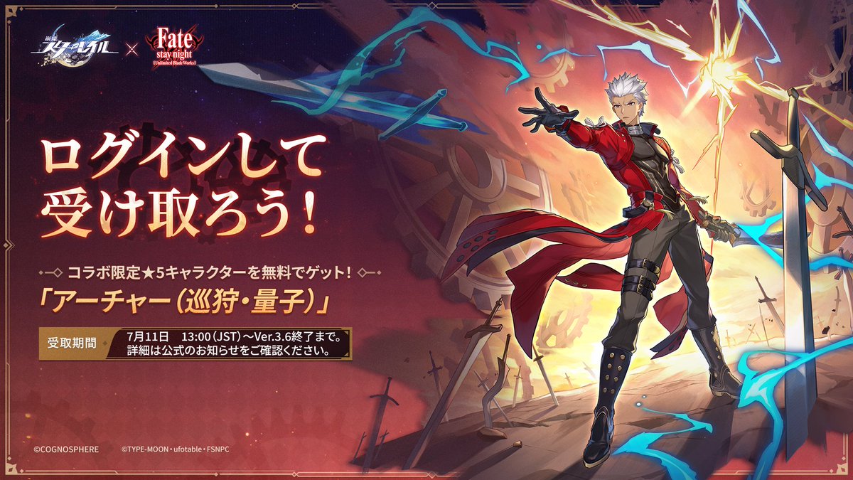 @riruha_n崩壊スターレイルがfateとコラボしてエミヤ配布とか天元突破なこと言ってる