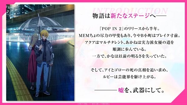 | <【推しの子】>テレビアニメ第3期 ビジュアル“sideアクア”公開 新たなステージへ 嘘を、武器に 「週刊ヤングジャンプ」(集英社)で連載中の人気マンガが原作のテレビアニメ「【推しの子】」の第3期の新たなビジュアルとして、“ティザービジュアル sideアク… (出典:) |