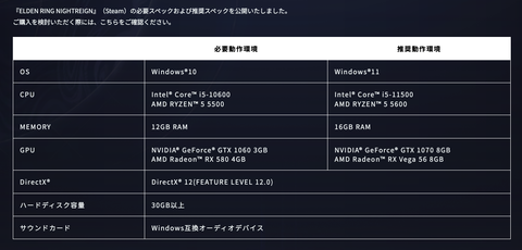 @kumanazエルデンリングの要求スペック、モンハンの後だとむしろそれで動くのか不安になる